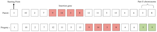 The insertion mutation randomly selects a gene or part of a gene in a chromosome to insert into a random site, as shown in Figure 8.