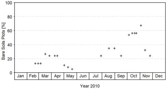 Relative number of bare soil plots (%) during the field campaign.