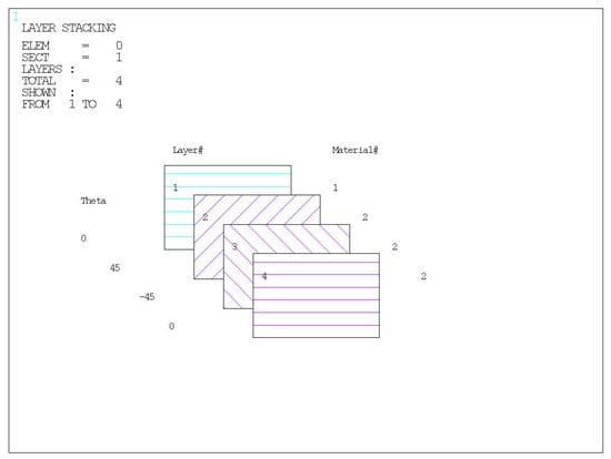 Two kinds of elements can be used for finite element analysis of composite models, namely laminated elements and anisotropic elements. In ANSYS, the laminated elements of composite materials include shell91, shell99, and shell181 elements [20]. The introduction of different unit types is shown in Table 1. The elements typically used in this paper are shell181 elements.