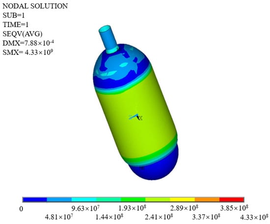 With the continuous advancement of computer and software technology, fine modeling has gradually become an effective method. At present, SAP2000, ANSYS, ABAQUS, OpenSees, etc. have been widely used in the world, and a large number of numerical simulations and parametric studies have been carried out on composite pressure vessels. By comparing the effects of different winding angles on the stress of carbon fiber composite pressure vessels, Arhant et al. [6] determined the failure according to the maximum strain criterion, the maximum stress criterion, and the Tsai-Wu failure criterion. It was found that the performance of the pressure vessel when the fiber winding angle was 51° was significantly better than that of other pressure vessels. Li Changpeng et al. [7] used the grid theory and finite element model to design the carbon fiber winding ultra-high pressure pre-mixed abrasive tank, which reduced the mass of the traditional abrasive tank by 80%, and the mechanical performance of the tank was better. Chen Xiaoping [8] aimed at the current situation in which the research and application of high-strength medium modulus T800 carbon fiber are less, and the T800 carbon fiber fully wound composite pressure vessels with different diameters were obtained by the dry winding process, which laid a theoretical and experimental foundation for the industrial application of high performance T800 carbon fiber.