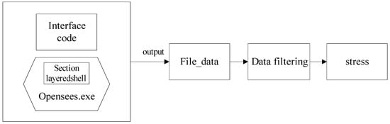 (1) The interface program is written in C + + language to output stress. According to the characteristics of OpenSees software and the layered shell model’s programming structure, the stress information’s position is determined. Then the interface program is added to the programming structure of OpenSees, and OpenSees is recompiled to obtain a new OpenSees execution program [25].