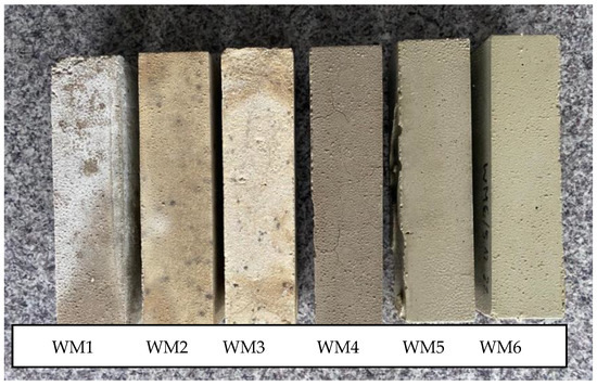 Mortar samples were then prepared on the basis of the above formulations. Geopolymers made with stone wool waste were tested (Figure 5).