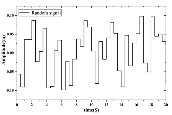 Equation (24) is used to simulate the disturbing external force during the motion across the medium. Additionally, considering the position offset generated by the amphibious multi-rotor UAV due to wave surge during underwater waves, this paper uses the random signal as shown in Figure 5 to represent the position offset and add it to the simulation position control loop.