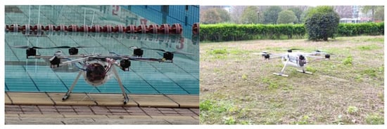 - Wang, Y.; Li, J.; Huo, J. Analysis of the hydrodynamic performance of a water-air amphibious trans-medium hexacopter. In Proceedings of the 2020 Chinese Automation Congress (CAC), Shanghai, China, 6–8 November 2020; pp. 4959–4964. [Google Scholar]
