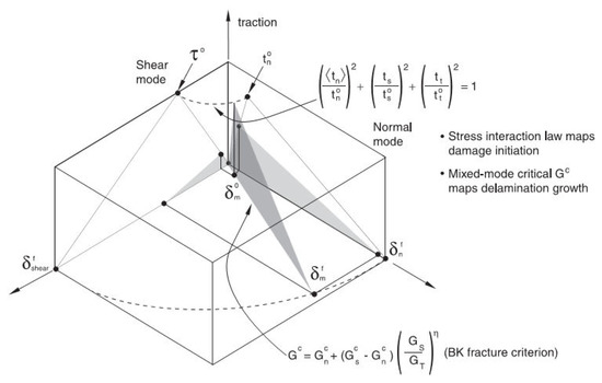 Linear elastic adhesion–separation viscous behavior of progressive damage failure.