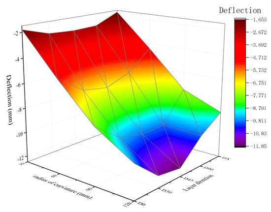 Maximum deformation vs. fiber layering direction and radius of curvature.