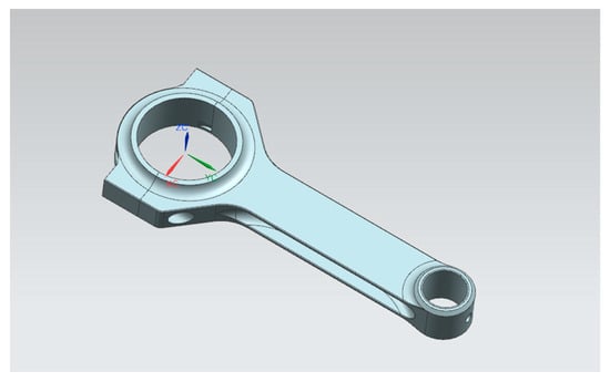 All the models in this paper are built in the CAD module of NX software. According to the three views of the automobile connecting rod given in Figure 2, the three-dimensional model of the automobile connecting rod shown in Figure 3 is drawn.