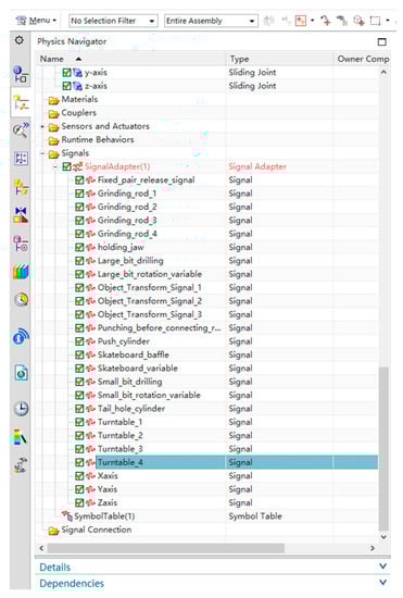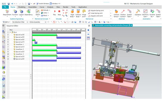 The validation of the model is mainly completed in the MCD module of the NX software. On the basis of the NX CAD platform, Mechatronics Concept Designer (MCD) is a digital solution for electromechanical joint design. It provides a multi-disciplinary, multi-sectoral information interconnection technology that can be used to simulate the complex motion of mechatronic systems. NX MCD adopts a design method based on function. The development team can use a hierarchical structure to decompose functional components and directly link them with requirements to ensure that customer needs are met throughout the product development process.