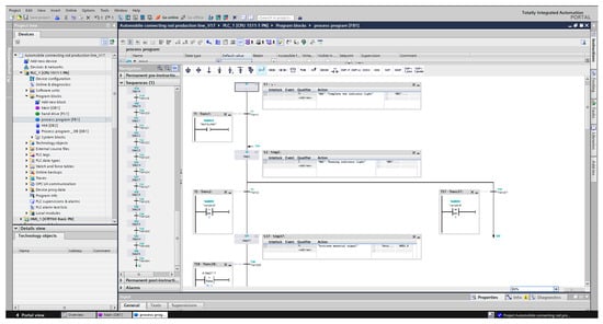 The control process shown in Figure 12 uses the sequential control programming method to edit the program logic.