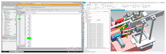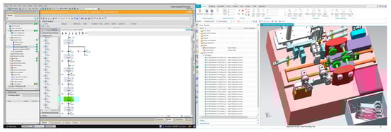 Virtual debugging supports concurrent design and digital prototype debugging so that the relevant control software and hardware can be combined with the mechanism model in the early stage of product design, thereby reducing the risk of innovation, controlling product design, and demand-driven design at various stages. The planning and design of the production line mainly adopt software-in-the-loop virtual debugging. The debugging software combination adopted in this paper is NX MCD + TIA Portal + S7-PLCSIM-Advanced (OPC UA), and the PLC used is S7-1500.