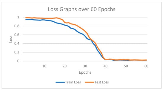 The results of the proposed model for the loss graph are shown in Figure 3. This indicates that the proposed model loss graph continues decreasing with time. Initially, the model’s loss graph is observed to be high, but it steadily decreases over time. This is due to the proposed model’s ability to learn, which makes it more stable and competent at classifying normal and malicious traffic.