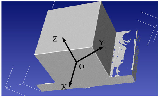 As shown in Figure 8, the coordinate system of the target block is established. Based on the normal vectors of the fitted YOZ, XOZ, and XOY planes and the intersection of the three planes as the origin, the deformation coordinate system is established: