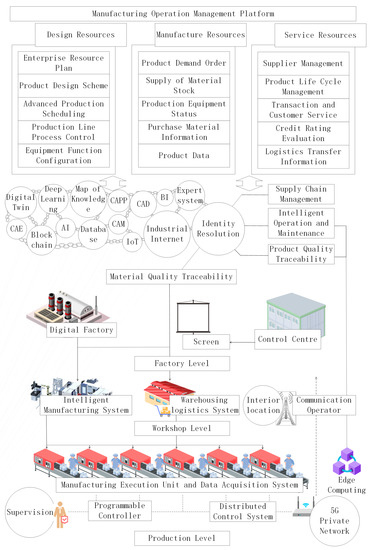 The identity resolution technology is throughout the level of information technology resources, due to the integration of the identity resolution technology with indoor positioning, deep learning, expert system, and other technologies. The traceability of materials consists of the traceability of the whole process from the upstream supply chain manufacturer and workshop level warehousing logistics to the workpiece output. It mainly tackles the production personnel, process plan, and manufacturing process at the production line level. The traceability of the production process and material quality ensures the high quality of the products. In addition, at the production line level, each part of the production equipment in the workshop is coded and the digital model of the production equipment is developed by using data mining technology. Quality traceability is performed for the whole life cycle of the production equipment parts at the level of operation and maintenance.