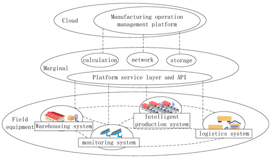 The collaborative interaction between the digital intelligent control center and the field equipment is performed through “cloud-edge-end” edge computing, where the “end” is responsible for the connection of the production line equipment, supports a variety of several heterogeneous network interfaces, and integrates the equipment and information system into a whole through communication. It also performs the hardware collection and interconnection of PLC control, machine tool system, cutting, welding, logistics and testing equipment, and configures the corresponding acquisition module and protocol according to the actual interface type. “Edge” performs data classification and identification processing of equipment status and algorithm. The edge management accepts sensor perception data and task instruction execution results from the production equipment of digital factory and performs cleaning, coding, mining, analysis, and fusion for the collected at the device end. In addition, the control instructions are sent to the welding, cutting, logistics, machine tool system, and others through the interface of the equipment end to the real-time monitoring of the production line level equipment status. The manufacturing operations management platform is responsible for further data analysis and report presentation. It supports the mainstream standard data interface and data sharing of the business application system. It receives the data uploaded from the edge side, stores it in the cloud computing center, transmits the real-time data to the cloud computing center for model training, and stores the time-stamped data as historical data for cloud computing model call. The edge computing architecture based on the concept of “cloud-edge-end” is of great significance for full connection digital factories. With the breakthrough of the edge computing technology in practical application, and the rapid development of the new generation communication technology and embedded hardware technology, more computing can be performed by relying on the computing power of the intelligent devices on the “end” side. This allows to avoid unnecessary data transmission to the cloud. That is, decision screening of the terminal device data on the device side is performed. This will make full use of the physical resources of the digital factory, filter and analyze at the edge nodes [35], save energy and time, and reduce the possibility of delay caused by data transmission. Only the required content will be sent to the cloud computing server through the communication network for data processing. It greatly improves the efficiency of data processing and decision making and reduces the cloud server pressure. Therefore, the edge computing concept based on 5G and other advanced network technologies provides a new solution for the problems of bandwidth competition and serious time delay when large-scale data are accessed by the industrial Internet. Edge computing can enable data connection, data optimization, and intelligent decision making in the case of real-time security, so that the data can really play a crucial role in ensuring the industrial site quality, cost, efficiency, and safety, and solve other critical problems. The continuous development of edge computing accelerates the deep integration of information technology resources and platform service resources and has a significant role in the industrial Internet era.
