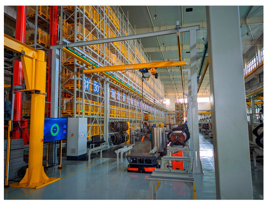 At the automatic production level, according to the current order, the digital technology is used for the design of resources and process plan, production team personnel arrangement, work order of each production line, production material allocation, coil process plan, semi-finished products storage, as well as transportation and discrete assembly, finished products delivery, and order delivery to ensure a normal, orderly, and automatic production. The 5G communication base station deployed in the workshop is combined with the workshop positioning technology to perceive the position state depth of AGV. Moreover, cloud computing [39] is combined with the edge computing technology to specifically split the material distribution tasks of each station and rationally subcontract the types and quantities of the materials required by the station and the distribution path of AGV. The AGV equipped with an artificial vision camera can then identify the obstacles on the path. The workshop monitoring system and edge computing platform were combined to avoid obstacles, and the distribution rhythm was adjusted according to the production rhythm. The intelligent warehousing logistics of multiple stations and various materials in the whole distribution process are realized, as shown in Figure 6.