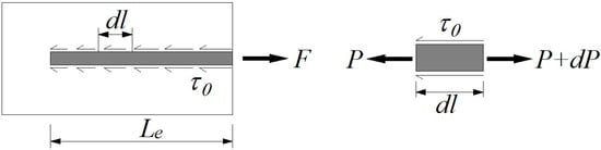 For a single original steel fiber embedded in the matrix, as shown in Figure 8, an increment of the axial force in an infinitesimal segment of fiber is: