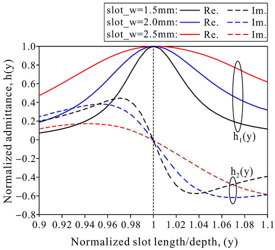 Effects of the slot width versus normalized admittance at the resonant frequency of 9.8 GHz.