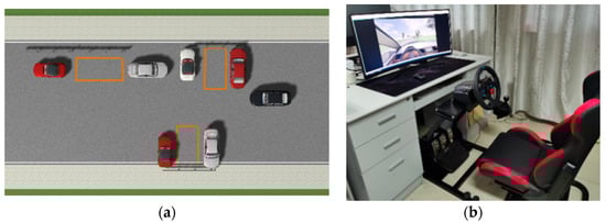 (a) Simulated parking environment for capturing intelligent parking driving models. (b) Driving simulator.