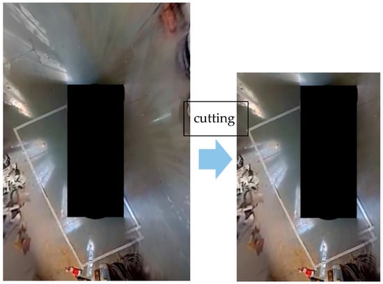 Compared with intelligent driving, the environment of intelligent parking is more complex, requiring a higher accuracy of obstacles and boundary detection. There are many blind areas of view around the vehicle, so this paper uses the vehicle surround-view system to complete the acquisition of image information around the vehicle. However, there are disturbing pixels in the surround-view map that affect the training effect, so the end-to-end intelligent parking surround-view map should be pre-processed to improve the adaptability and generalization of the model in the intelligent parking environment: in the left horizontal parking condition, the movement of the car parking slot line is always located at the bottom left of the surround-view map slowly, so the bottom left of the input sequence of the surround-view map should be cropped, as shown in the right part of Figure 8, to achieve the goal of not changing the premise of the image sequence’s input size, to avoid the low training efficiency due to the compression of the model on the region of interest, in order to reduce the interference pixels present in the input surround-view image, and improve the recognition accuracy of the parking slot line and the obstacle in the image.