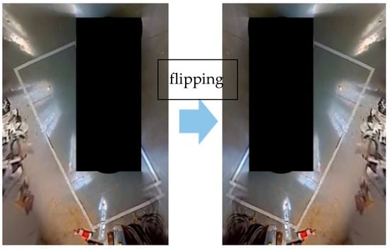 In addition, the dataset is enhanced using the horizontal flipping enhancement method [28]. Random frames in the dataset are flipped horizontally to obtain their mirror frames, and the flipped car loop view is shown in the right part of Figure 9. This method helps to smooth the algorithm and make the end-to-end intelligent parking system more stable.