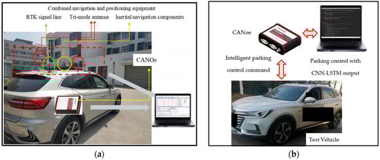 (a) The hardware architecture of the intelligent parking experimental system; (b) path data collection platform.
