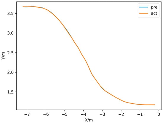 Group 1: Frame-by-frame analysis of the parking trajectory of the actual car test, Figure 17, shows the experimental environment of this experiment and the end-to-end intelligent parking model controlling the experimental vehicle for parking. The deviation is the mean square error between the car’s predicted and actual path coordinates on the x and y axis. Figure 18 shows the comparison trajectory between the actual car and the test for the complete parking process with of 0.048 for the x-axis trajectory coordinates and 0.012 for the y-axis trajectory coordinates. Figure 19 compares the control decision between the actual car and the test for the actual car for this parking process. The results show that the computational model provides a smooth driving experience that is consistent with a skilled driver.