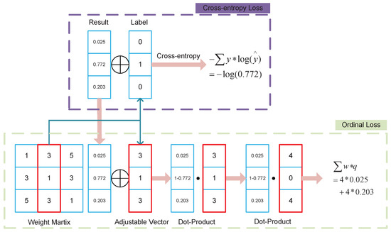 Chen et al. [41] suggested that there is a relationship between different severity grades in knee osteoarthritis. A higher loss should be obtained if the predicted and actual grades are farther apart in order. For example, knee osteoarthritis has five grades, and the weight loss for misclassifying grade 2 as grade 1 and grade 0 should be different. Therefore, on the basis of the focal loss, an ordinal loss is proposed to detect osteoarthritis.