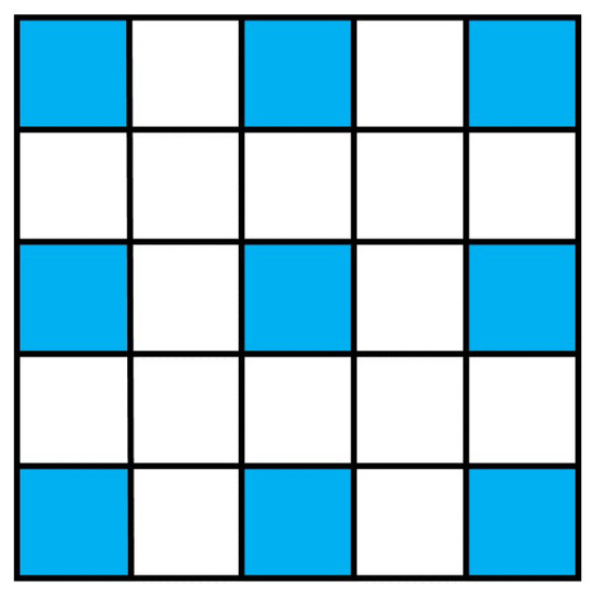 A (3 × 3) kernel with dilation rate has a field of view of (5 × 5). Blue are the elements for the kernel and white are the skipped elements.