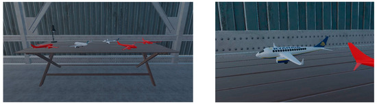 More recent works in this field were presented by Lee et al. [16]. They proposed a system that incorporates virtual reality methods into the classroom to compensate for the shortcomings of the existing remote models of practical education. Based on the proposed system, the authors developed an aircraft maintenance simulation and conducted an experiment comparing their system to a video training method. Some retention tests were conducted, and presence was investigated via survey responses. The ones given to the presence questionnaire confirmed a sense of spatial presence felt by the participants, and the usability of the proposed system was judged to be appropriate. In the same year, Wu et al. [17] presented in their work an aircraft maintenance virtual reality system. For a Dornier-228 aircraft, a walk-around visual inspection of its fuel system was designed in a virtual environment. The environment was tested by students to validate the effectiveness of using the system in training. The students acknowledged that the system was beneficial to their learning, which proved that the developed system is highly effective for training 148 students to improve aircraft maintenance skills.