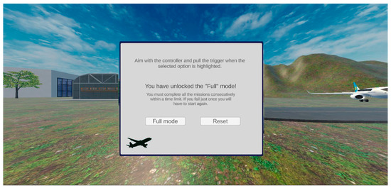 - Unpredictability and Curiosity: Encouraging curiosity is a tool used in many games as a measure of attraction (and, in many cases, monetization): reward boxes or envelopes are some of the most commonly used examples. In this gameful experience, the possibility of collecting miniature aircraft is complemented by this feature. Each time the user successfully completes a mission, the aircraft provided to the user from the ones blocked is randomized (Figure 5), so if the user wants to obtain a different one, they could repeat the experience to try to obtain a different one. This technique is intended to encourage the re-playability of the scenarios, thus receiving more practice with the training content.
