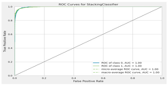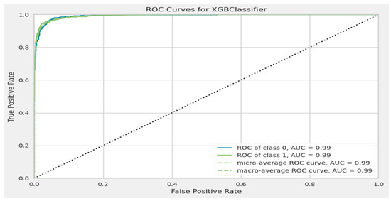 The XGBoost model’s ROC curve after the hyper-parameter tuning.