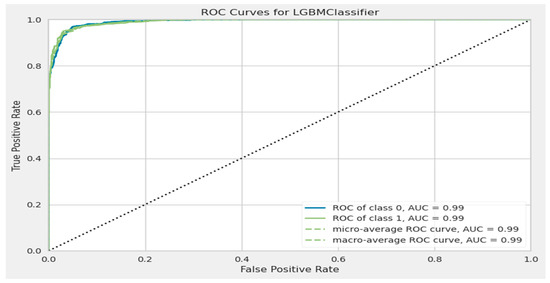 The lightGBM model’s ROC curve after the hyper-parameter tuning.