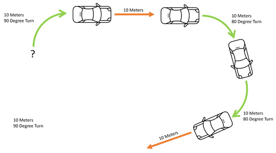 In the example of a car driving a set distance, then the problem can be explained in more simple terms. In this example, the car has instructions to drive 10 metres, then turn 180 degrees over another 20 metres, and, finally, repeat. This creates a “loop” whereby the car returns to the position it started in, this is shown in Figure 8. In the first image, this can be seen in effect. The image shows the car with perfect odometry and therefore returns to the same starting position. However, in the second image, we can see that the car has an error on the internal distance and rotation reading and, therefore, even though the car believes it is back to the same position it started at, the ground truth shows a different story and, in fact, the car has not returned to the starting position, leaving an “open” loop circuit.