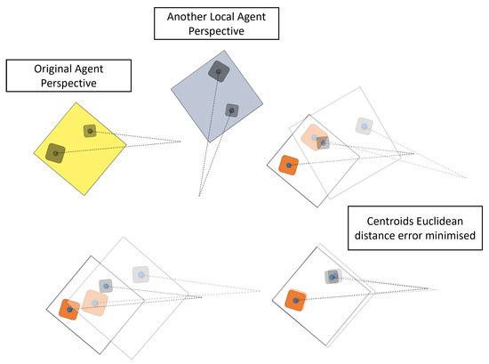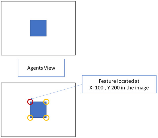 Object centre point—Now that there is a defined centre point for objects, or landmarks, within the environment data, the agent can utilise this to align the agent’s pose and location, this is shown in Figure 20 The agents should also be able to use the mapped-out understanding of the environment in order to localise. This is much more in the order of traditional SLAM; however, with further work in this topic, there is an intent to use an ontology overlaid onto the topology, and this could play a significant part in the detection of features within the image.