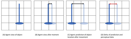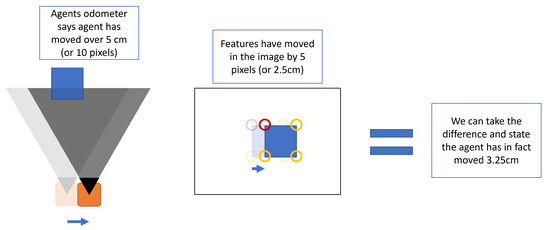 Figure showing measurement of differences in where object features are in the world vs. the prediction based on the agent’s odometer.