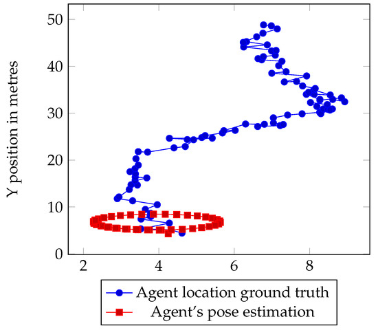Based on Figure 25, it is evident that the error in the pose estimate escalated rapidly and almost exponentially. Although this error curve may decrease slightly over time, it does not align with our expectations. This single agent is operating in a simulated and relatively sparse environment, which makes it challenging to localise accurately.
