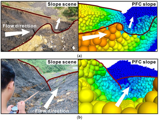 This paper optimizes the wash shear failure theory and combines it with the discrete element PFC3D method to verify its rationality, which provides a new idea for the PFC flu-structure interaction method. In addition, the article enriches the modeling method of the PFC coal gangue slope model and provides a valuable reference for the early warning and simulation of coal gangue slope engineering disasters. However, when building the PFC3D model, this paper assumes that the model is an ideal boundary model, and the types of clusters are limited to three, and the relationship between the ratio of various clusters and the model parameters is not considered in depth. At the same time, the setting of the fluid module is too small, and the fluid–structure coupling design requires further improvement. Although only one kind of soil material (coal gangue) is considered in this study, the clump modeling method, the test process of particle flow meso-parameters and the fluid–structure coupling model of erosion damage can be further used for the simulation of clay and sand. Interestingly, we happened to have conducted a project on the improvement of red clay in Sichuan, China, recently, so the simulation method will be further improved. This paper is based on the real geometric shape of the scene to model, which is representative but not comparative. In the next research work, the rainfall erosion mechanism of different slopes with different angles and shapes will be the focus. The influence of pore water pressure on the failure mechanism of a coal gangue slope is not discussed in this paper, which requires further study.