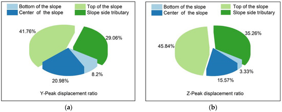 Percentage of the peak displacement of the monitoring points. (a) Proportion of peak displacement in the Y-direction. (b) Proportion of peak displacement in the Z-direction.
