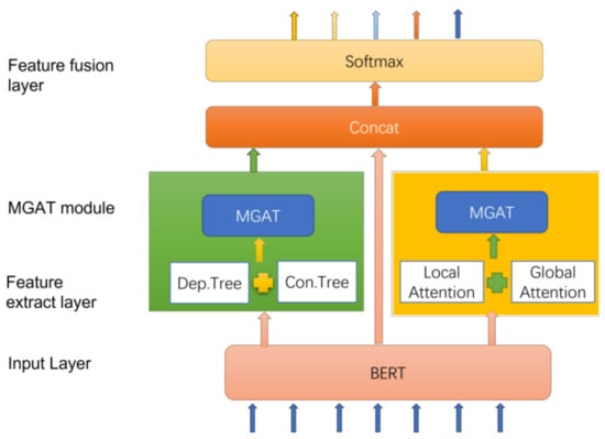 - Xiao, Z.; Wu, J.; Chen, Q.; Deng, C. BERT4GCN: Using BERT Intermediate Layers to Augment GCN for Aspect-Based Sentiment Classification. In Proceedings of the 2021 Conference on Empirical Methods in Natural Language Processing, Punta Cana, Dominican Republic, 7–11 November 2021; Association for Computational Linguistics: Dublin, Ireland, 2021; pp. 9193–9200. [Google Scholar]