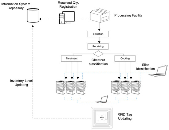 The benefits of RFID application in agri-food are widely demonstrated through empirical approaches [24]. In particular, the SC supply chain of chestnuts includes both the fruit supply and the delivery operations to large retailers. Farmers deliver fresh fruits to the producer, who processes them, and in turn delivers them to the distribution channels. Furthermore, for such fruit, some restrictions in the distribution exist with respect to features such as size and weight, that involve an additional selection process to be carried out before processing. In fact, the selection and identification of the batch is mainly based on size and weight. Yet, the chestnuts sector has no practical approach for SC management with IT solutions, and this lack has motivated our research.