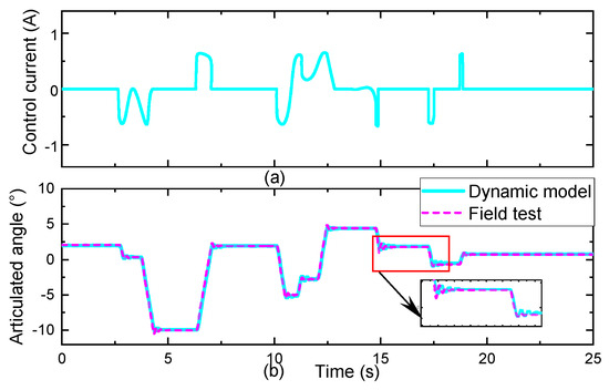 Articulated angle results. (a) Steering signal; (b) articulated angle.