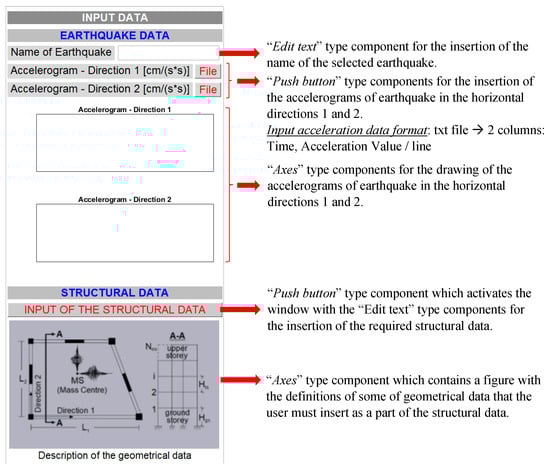 The panel “INPUT DATA” contains the GUI tools for the seismic and structural data insertion. Figure 5 presents the procedures performed by the GUI tools of the panel.