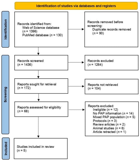 Moreover, in order to identify the RCTs with diet therapy for obstructive sleep apnea syndrome patients conducted only for participants treated with PAP, the corresponding authors were contacted, if necessary. They were asked about the studied group in order to include only those studies in which all participants were treated with PAP; those with participants treated without PAP, with mixed populations, or with no defined mode of therapy were excluded [,,,,,,,,,,,].
