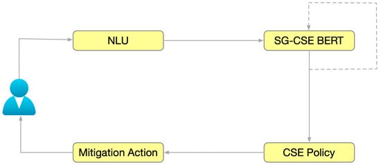 In this work, we implement the SG-CSE BERT unit, which detects information leakage and deception attempts. The information concerns SME, Information Technology (IT), and personal details, while in our context, we define deception as the attempt of a malicious user to persuade a user to use an IT resource. We follow the schema-guided paradigm utilizing Das and dialogue history. The steps toward SG-CSE BERT implementation are the following (Figure 2):