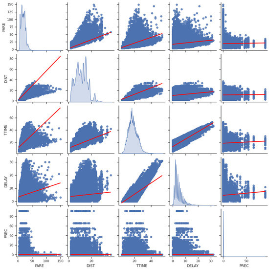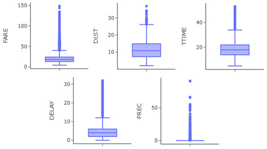 - Total fares were predicted, not just the surge multiplier, as noted by Battifarano and Qian (2019) [16]. This also made it possible to identify cases of low demand, in addition to cases of high demand.