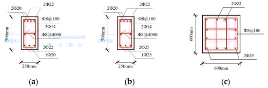 Section reinforcement drawing. (a) Side-span beam; (b) middle-span beam; (c) column.