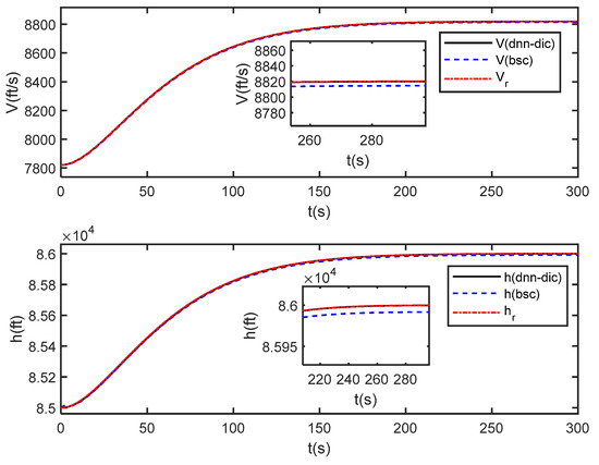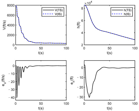 In this case, the vehicle starts at initial trim conditions as listed in Table 2. and tracks the reference trajectories of velocity and altitude generated by the second-order filters with natural frequency and the damping ratio .