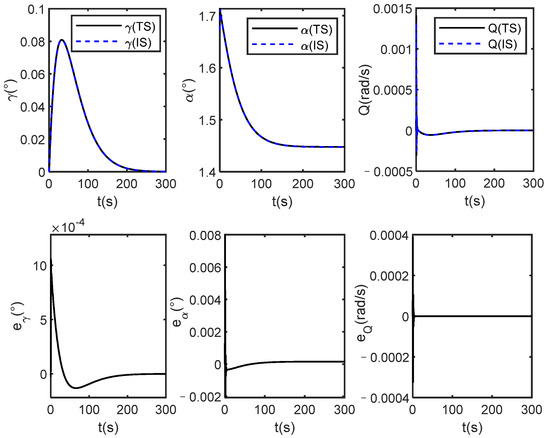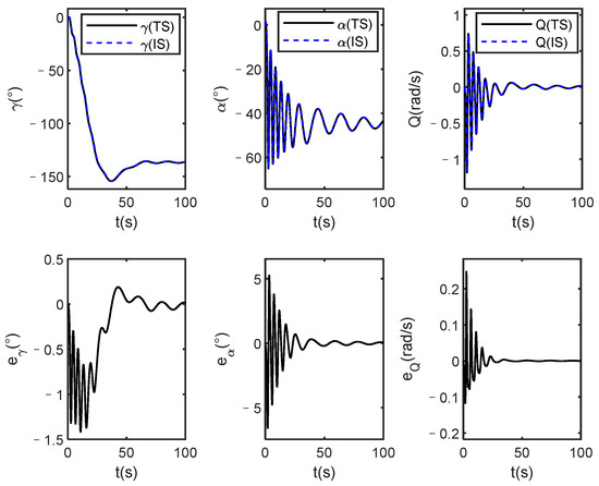 Altitude angles and errors of true system (TS) and identification system (IS) under dynamic inverse control.