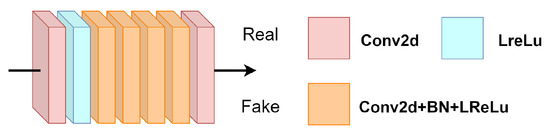 The main meaning of “Fake” and “Real” in Figure 3 is the discrimination result of the discriminator on the input picture, and whether the picture is a real training image or a fake image from the generator. “Fake” means that the discrimination result is a fake image from the generator, and “Real” means that the discrimination result is a real training image. Through continuous training, the pictures generated by the generator can deceive the discriminator, that is, the discriminator distinguishes the picture as “Real”.