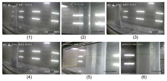 Some sample images from the icing wind tunnel. ((1–6) in the picture represent Image 1 to Image 6).